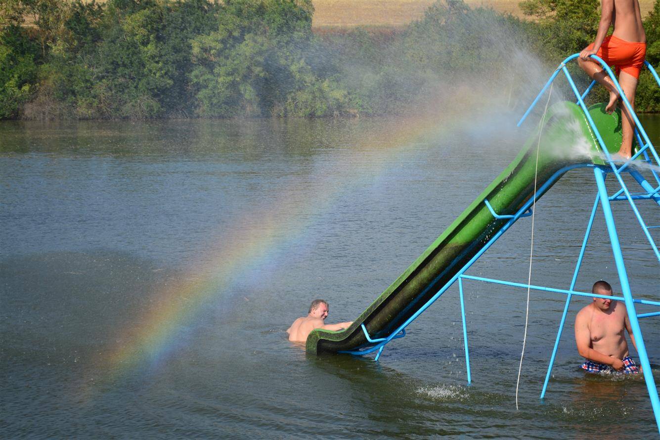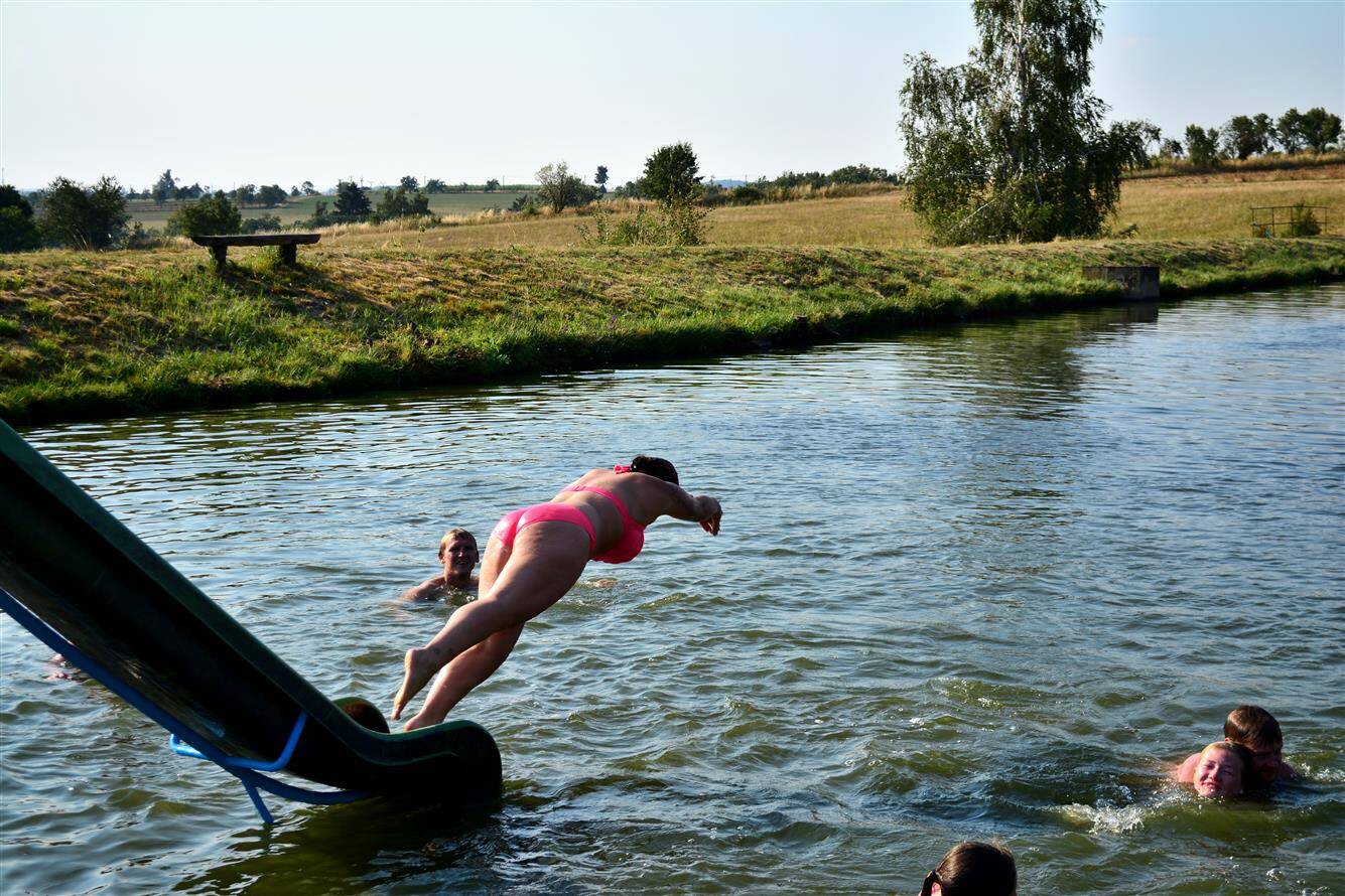 Umístění skluzavky do rybníka Žleb 2015